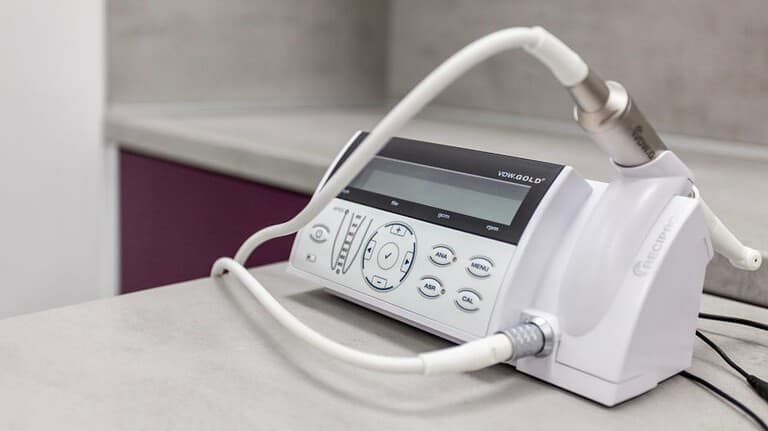Zubný lekár pritom nemusí pozerať na monitor prístroja, zvuková signalizácia ho upozorní na to, v akej hĺbke sa presne nachádza. Môže sa tak plne venovať ošetreniu.